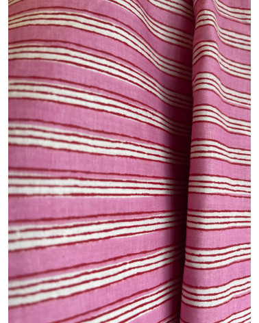 TISSU INDIEN BLOCK PRINT - RAYURE ROSE