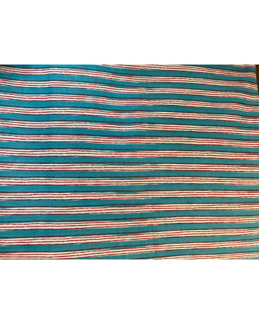 TISSU INDIEN BLOCK PRINT - RAYURE TURQUOISE